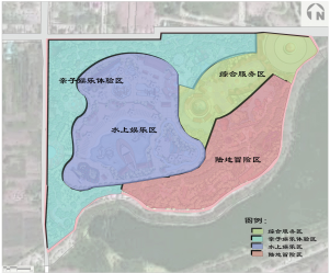 根據項目地的場地情況、開發現狀、發展思路等,確定功能分區為:綜合服務區——仙聚蓬萊、親子娛樂體驗區——八寶樂園、水上娛樂區——八仙戲水、陸地冒險區——龍宮歷險。